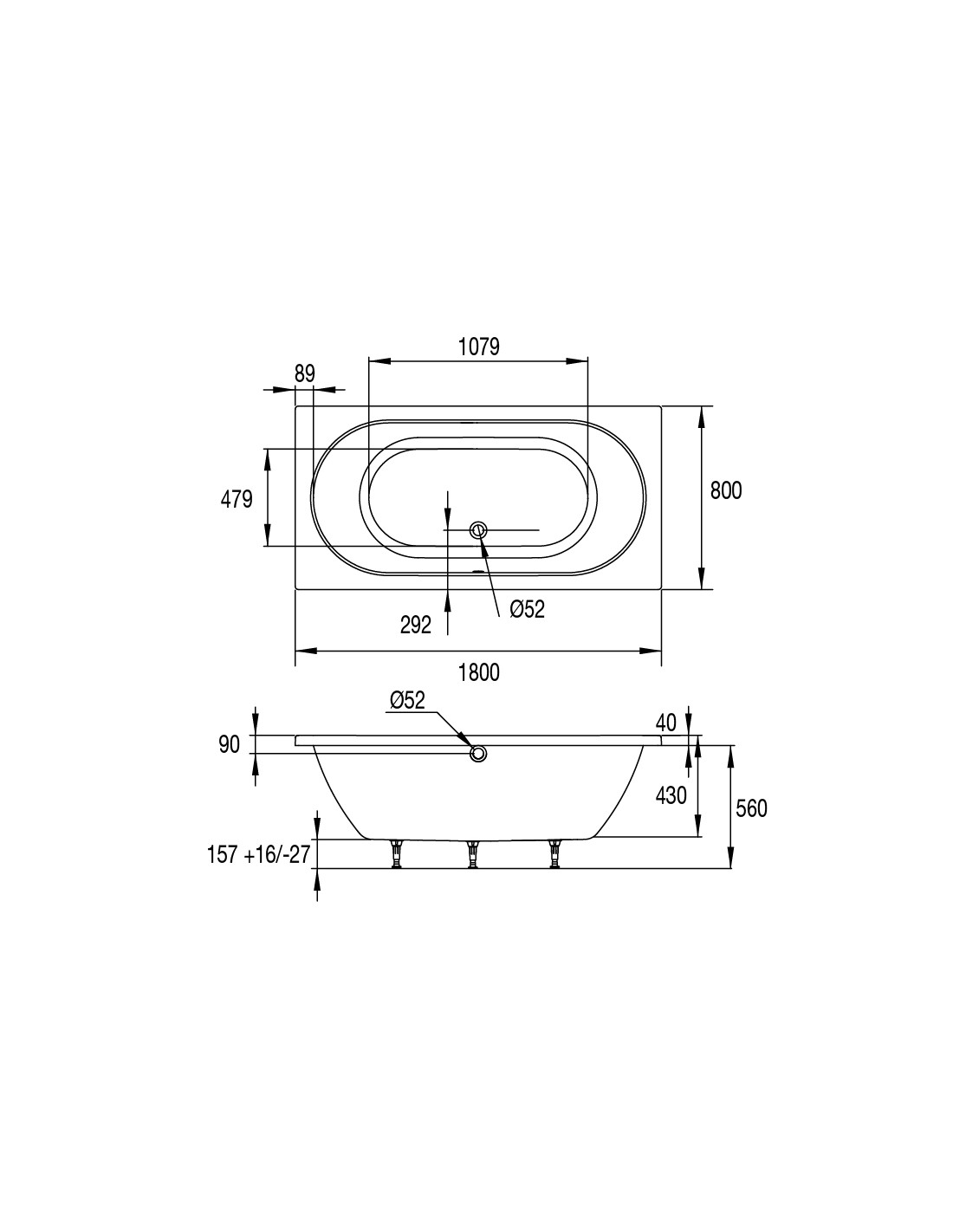 Dimensions 180 x 80 cm, interior depth of 43 cm