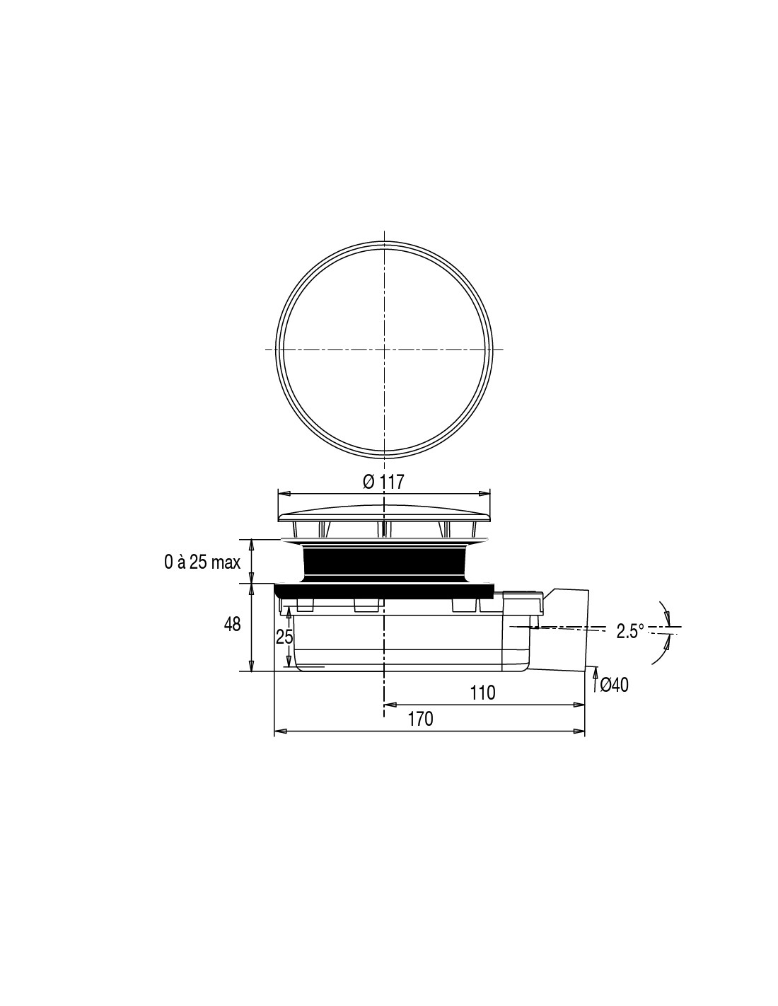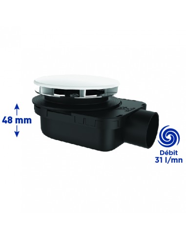 This compact waste is suitable for very low level shower trays diameter 90 mm. With only 48 mm high, it will easily fit into small spaces and reduce the removal of concrete. An integrated slope of 2,5°, eases the installation and guaranties a flow rate of 31 liters per minute. The double lip autofix seal offers a high quality watertighness for all synthetic or acrylic-capped stone resin shower trays with 90 mm diameter.