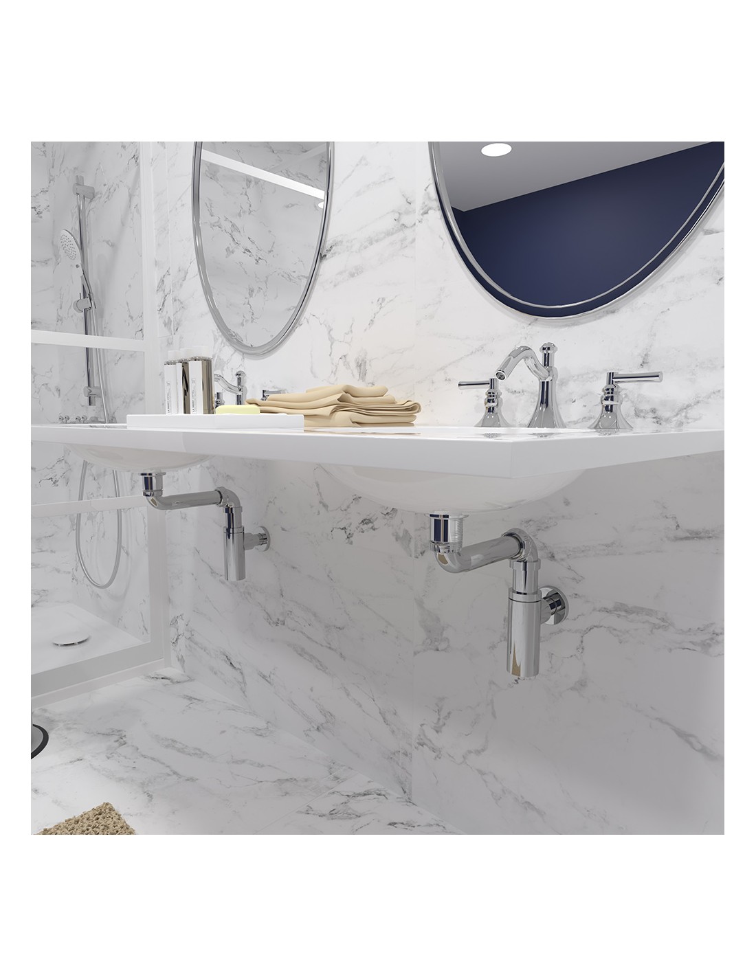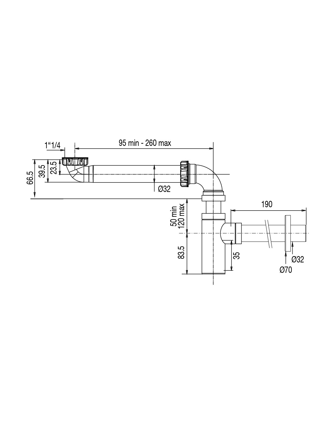 This space-saving connection pipe is perfect for equipping a washbasin and saving space while having a designer finish. The height under the washbasin of only 39.5 mm allows easy accessibility for people with reduced mobility. The siphon is adjustable in height from 50 to 120 mm, and the center distance is adjustable from 95 to 260 mm. Installation is quick and suitable for any type of sink or basin.
