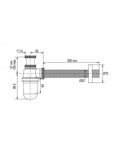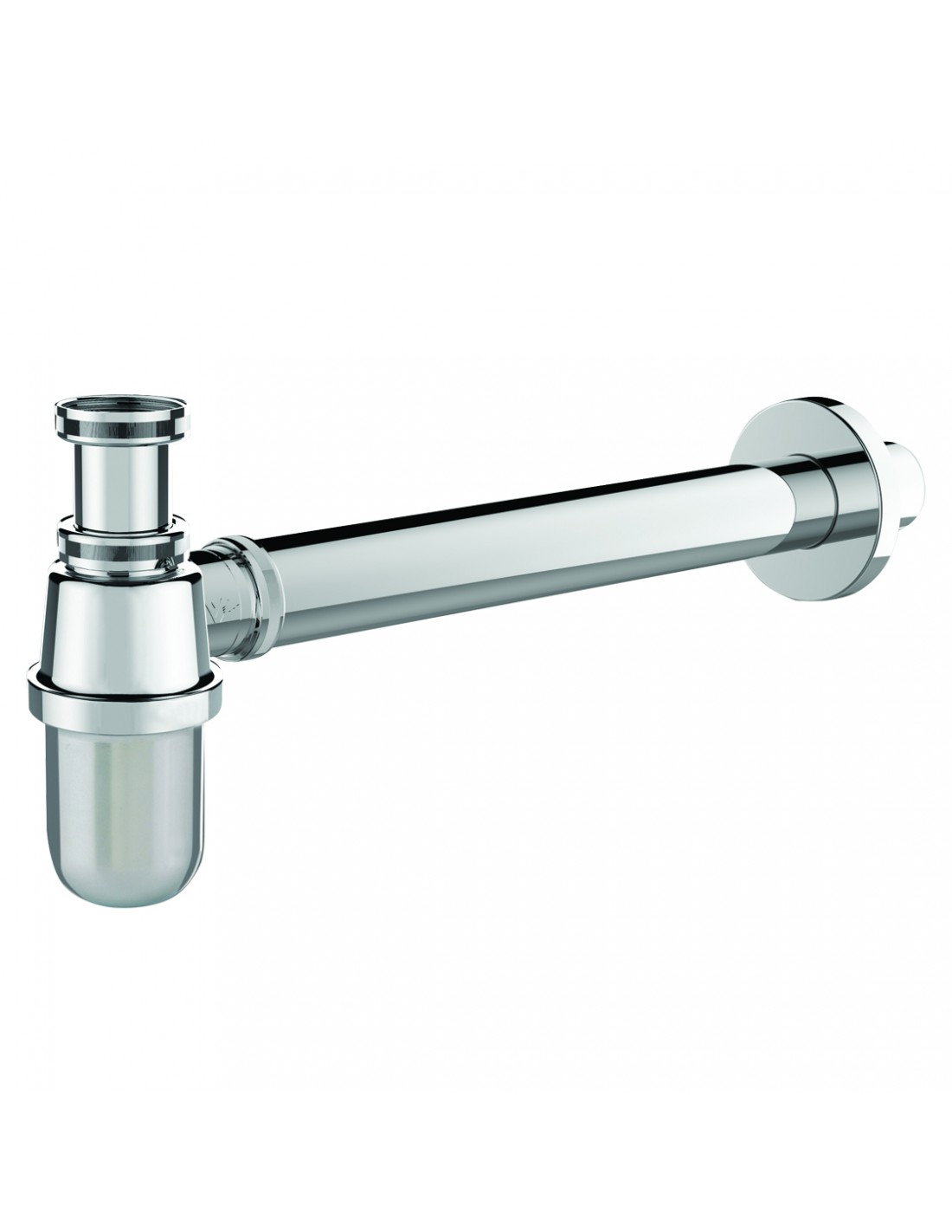 This chrome ABS sink siphon is adjustable from 37 to 100 mm and has a 1"1/4 inlet. Its 32 mm diameter wall outlet has a length of 300 mm and a 70 mm diameter chrome ABS rosette for a perfect finish.