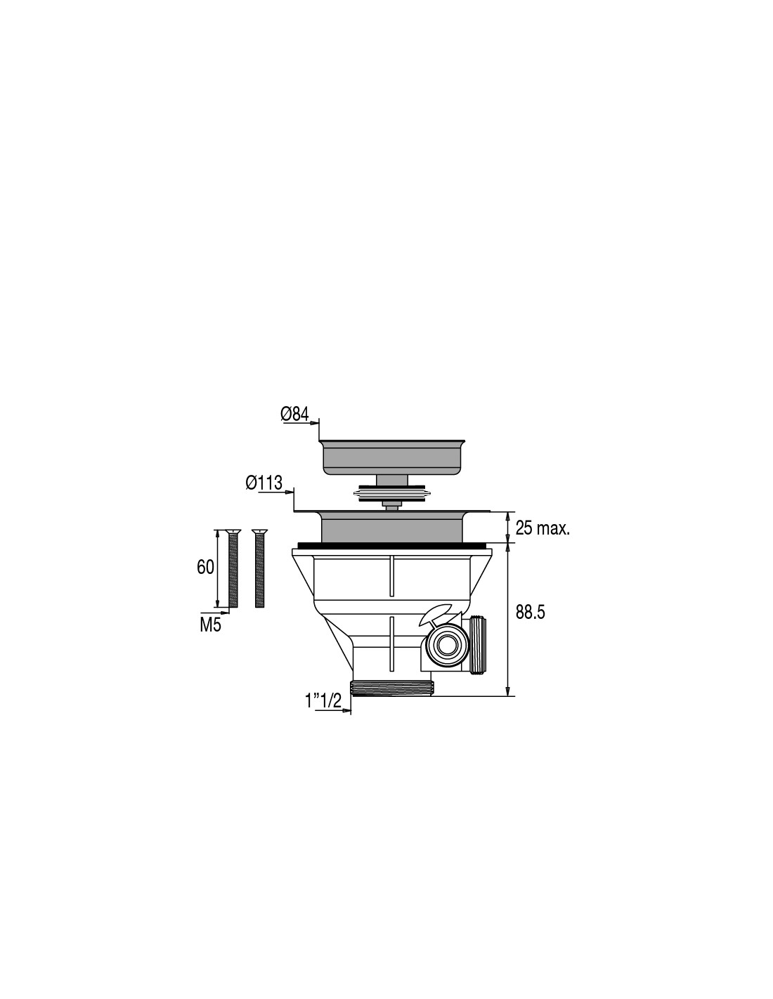 This basket strainer waste is ideal for 90 mm diameter kitchen sinks made of thick material. It can be tightened from 0 to 25 mm. The basket is 84 mm in diameter and has a sliding flap that allows to open or close the water passage. The stainless steel flange has a diameter of 113 mm. Stainless steel screws are supplied.