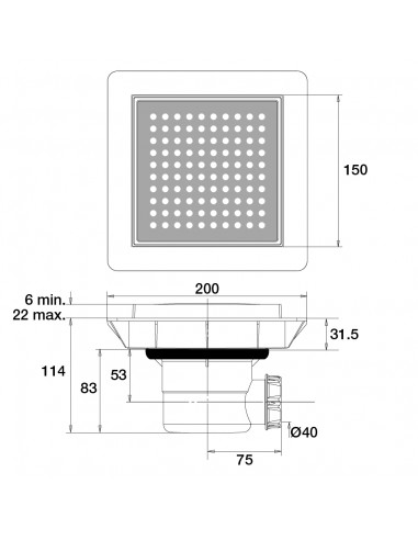 This Quadratto floor drain for walk-in shower has a height adjustable frame from 6 to 22 mm adjustable to the thickness of the tiles. The base is to be sealed in the screed, not exceeding 90 mm. The flow rate is 33 l / min to let the water flow smoothly and the hydraulic performance is easy to maintain. The waste is equipped with a cup removable without tools for easy cleaning and direct access to the main pipe. The horizontal outlet has a diameter of 40 mm.