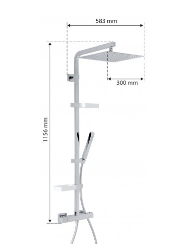 Domino shower column with thermostatic mixer, 2 storage shelves, chrome plated