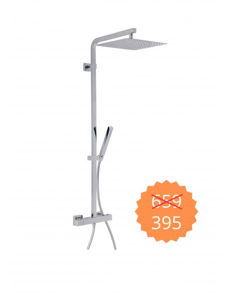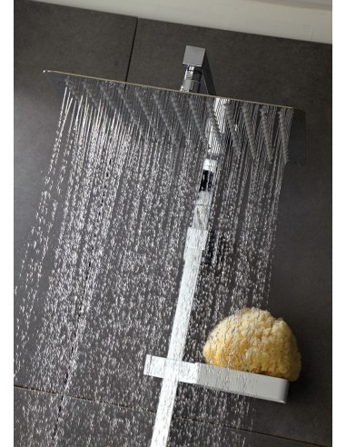 This Domino shower column has a chrome-plated brass riser rail with adjustable bracket for the handheld shower. The height od hand shower can easily be adjusted up or down. Equipped with a thermostatic shower mixer, it offers 2 types of sprays : 1 rain jet with the high adjustable 30x30 cm shower head and 1 rain jet with the hand shower both with its anti-limescale system.
