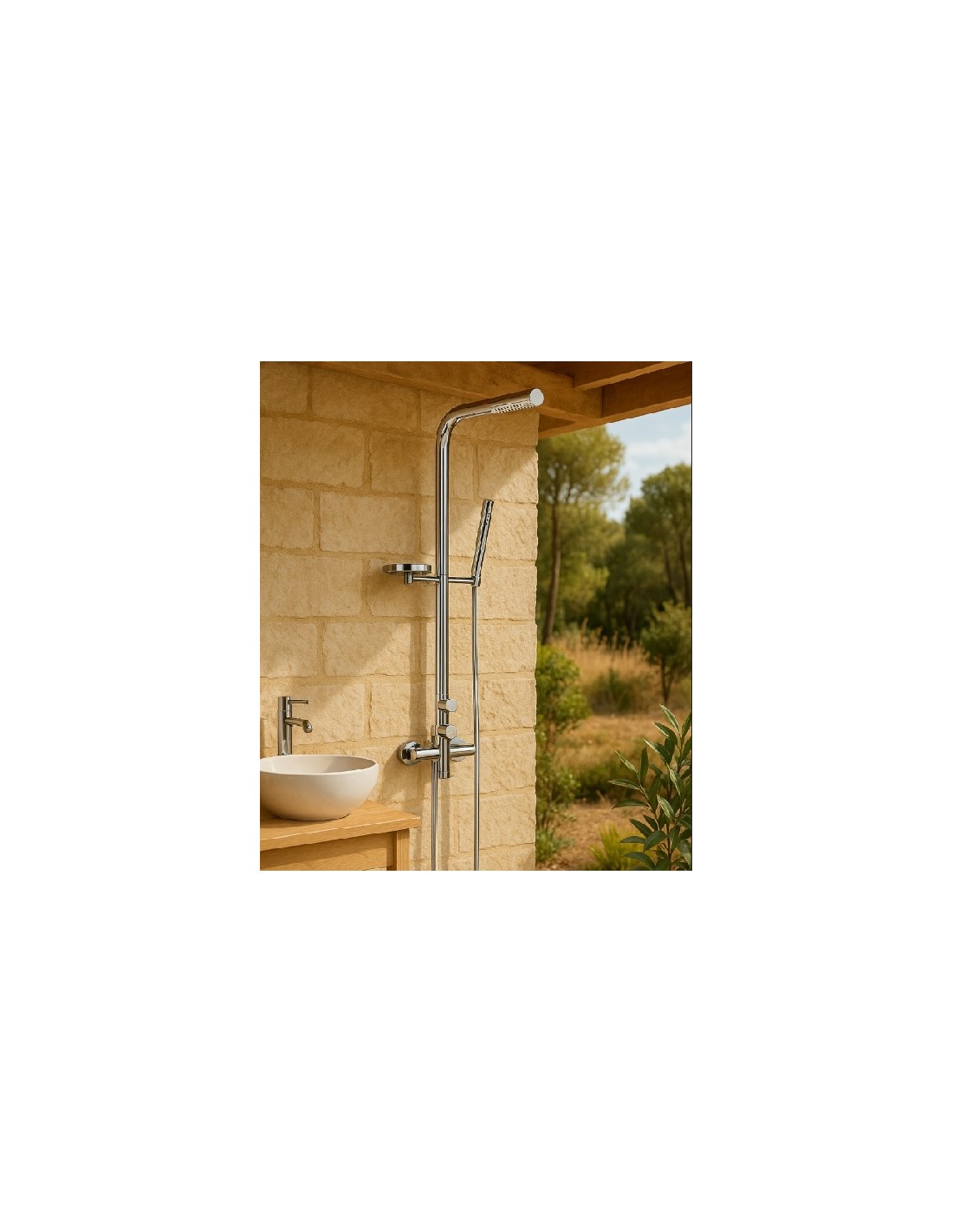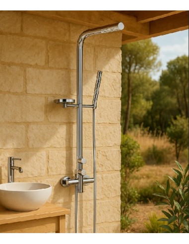 L'ensemble évoque la pool house ou la douche de jardin,du plus bel effet déco dans sa salle de bain.