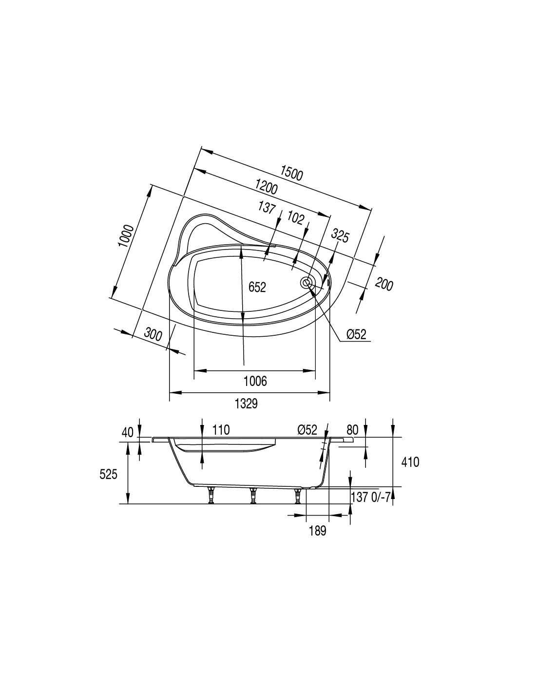 Baignoire Archipel d'angle version gauche, gain d'espace, assise intégrée, pieds ajustables inclus, 150x 100 cm