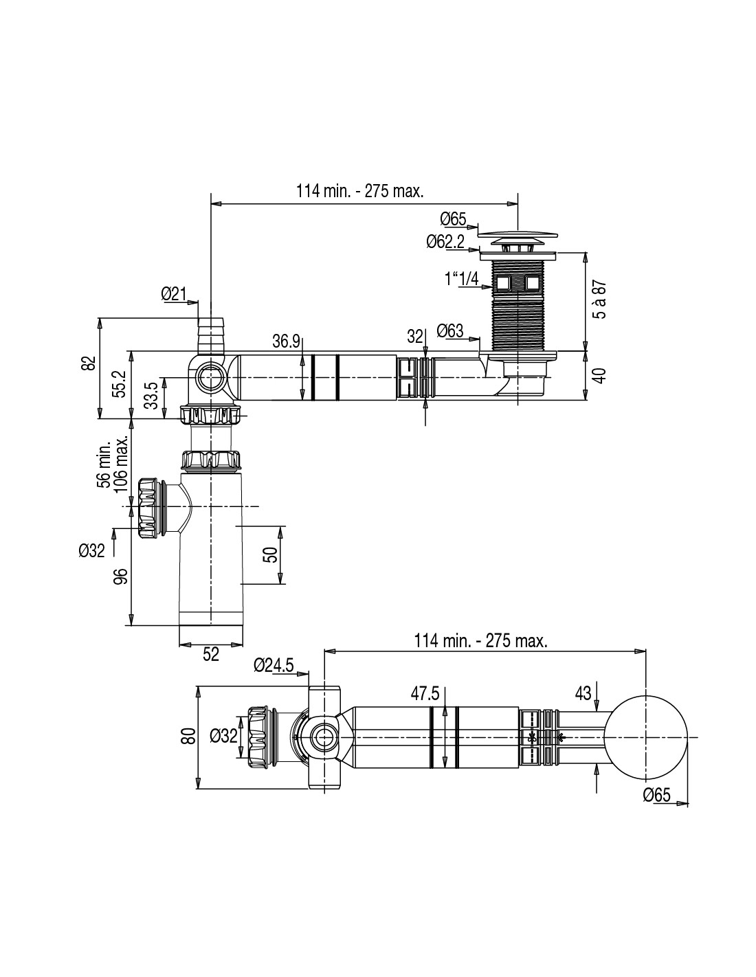 La tubulure est extra-plate et ajustable de 114 à 275 mm.